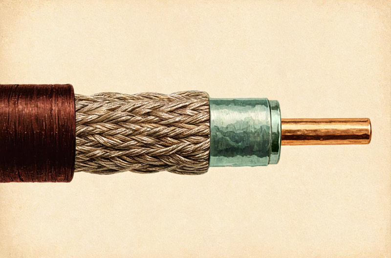 Для удовлетворения этих требований в 1929 году был создан коаксиальный кабель, который заслуживает подробного рассмотрения. Несмотря на появление более современных технологий, таких как Ethernet и оптоволокно, коаксиальные кабели продолжают активно использоваться и скоро отпразднуют свой вековой юбилей.